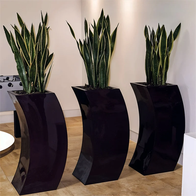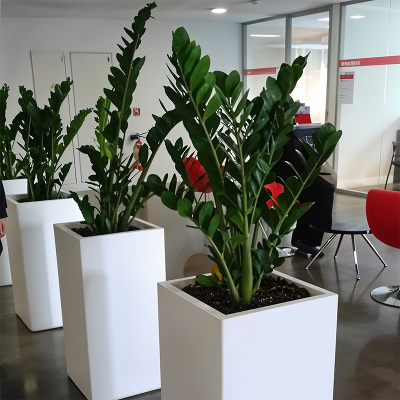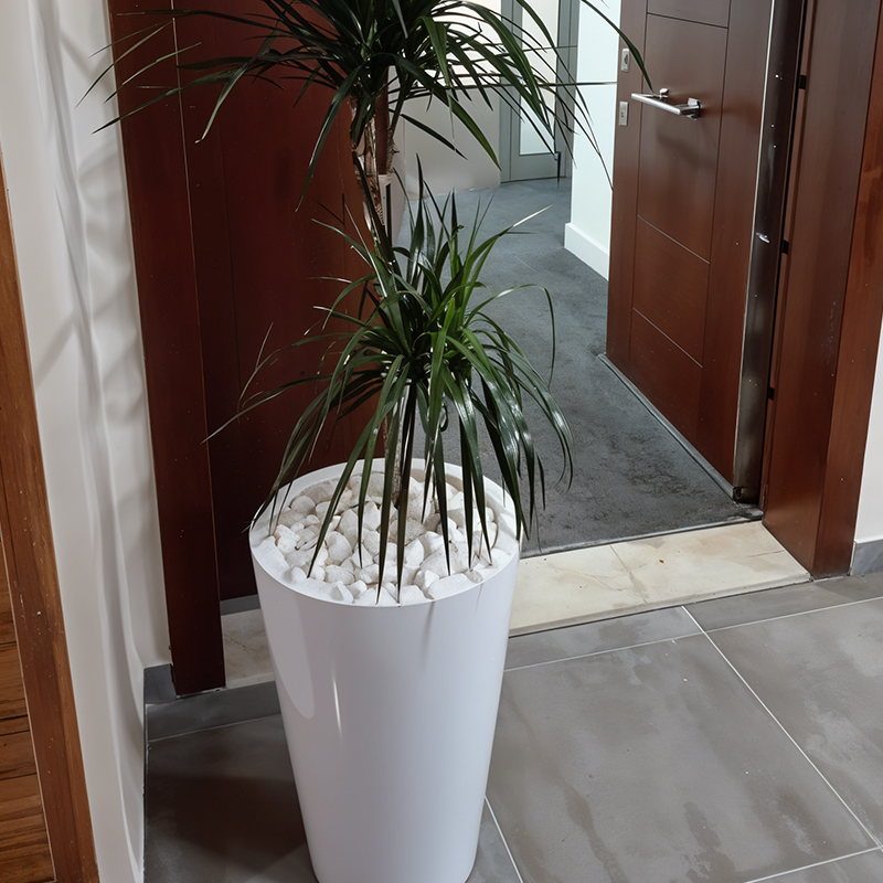 Nos pots sont conçus à partir de résine renforcée, garantissant légèreté, robustesse et une grande variété de finitions (mat, brillant, effet pierre…).